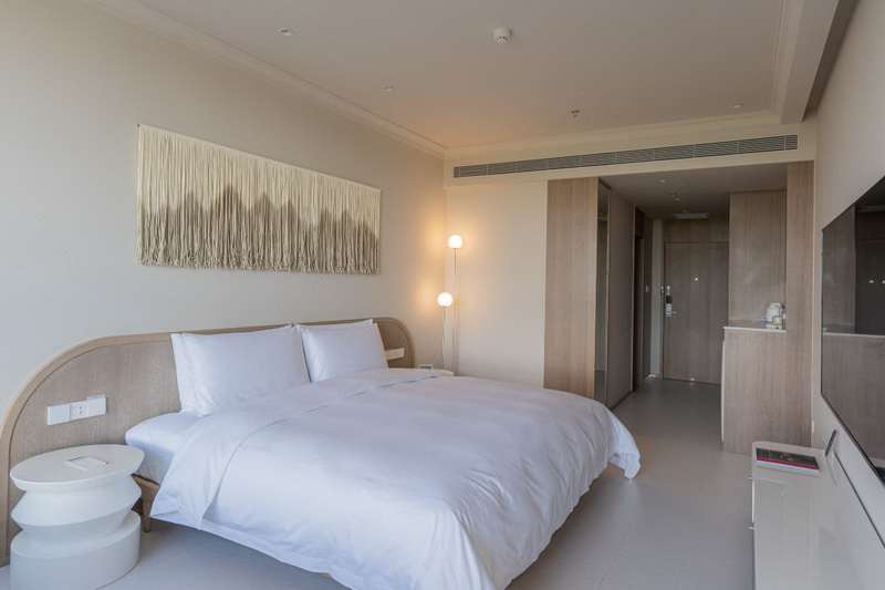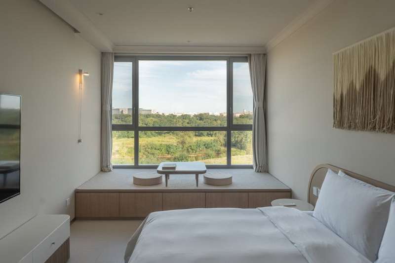 米特大床,并配備榻榻米,視野景觀俱佳,可一覽阿那亞濕地公園美景;酒店提供管家日出專線接送服務(wù),緊鄰園區(qū)第四食堂,門前設(shè)有巴士站點,運營時間為早8點至晚21點,每隔